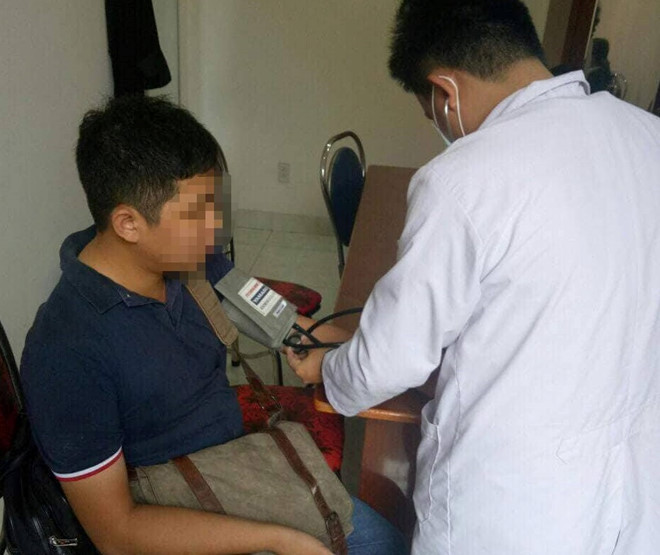 Phóng viên được bác sĩ sơ cứu. Ảnh: Quang Hải.