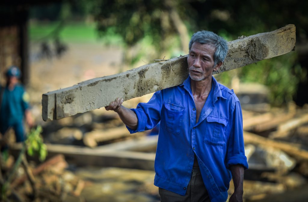 “Chiếc tủ gỗ đựng toàn bộ tài sản cũng trôi đi đâu mất không còn thấy. Chưa biết bao giờ mới có thể bắt đầu lại cuộc sống. Không còn thứ gì, cứ đưa tay lên dọn dẹp là lại rệu rã”, người đàn ông bị lũ cuốn mất nhà cửa, tài sản lo lắng.